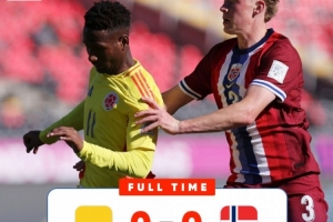 体育资讯10月3日讯 在世青赛小组赛F组第2轮,哥伦比亚U20以0-0战平挪威U20。