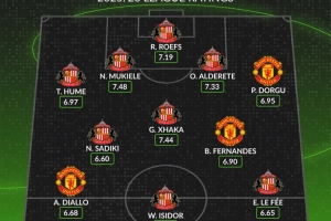 体育资讯10月4日讯 英超第7轮比赛,曼联将在主场对阵升班马桑德兰,WhoScored根据球员本赛季的评分列出两队合体阵容,曼联仅3名球员入选。