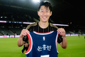 梦幻联动!洛杉矶FC足球明星孙兴慜 手持快船定制版球衣满脸笑容