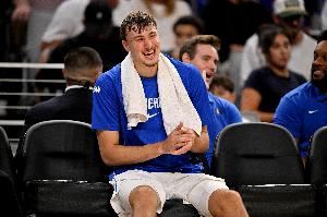 体育资讯10月7日讯 独行侠今日季前赛106-89击败雷霆,赛后,独行侠状元弗拉格接受媒体采访。