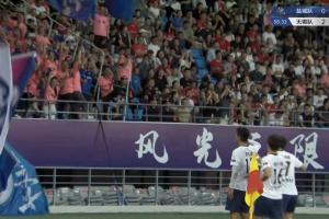 7分钟后,无锡攻势再度袭来,李皓然接队友下底横传轻松打空门,为无锡将比分扩大至3-0!进球后的他向看台举起了队友的球衣!